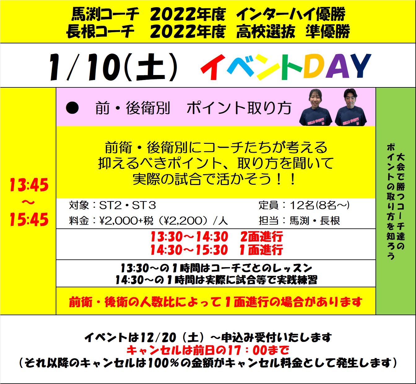 1月10日(土) 13:45~15:45 で高校、大学と両方で活躍している2人のコーチのイベントがあります!