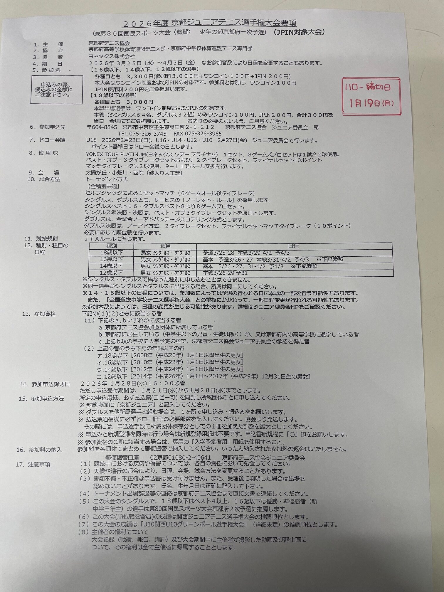 京都ウィンタージュニアテニス選手権大会要項の案内です。